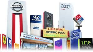 Another common type of outdoor signage is a roof sign. These are typically found on hardware stores, grocery marts and other similar locations. These type of signs are often affixed to the top of a building or structure and feature both the name of the business as well as their logo.